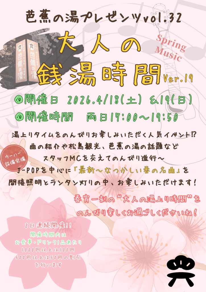 恒例の『大人の銭湯時間』を開催いたします!